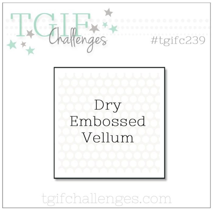 This week the challenge was dry embossing on vellum. So fun! Here is my card. The vellum really adds to the whole card. #TGIFC239